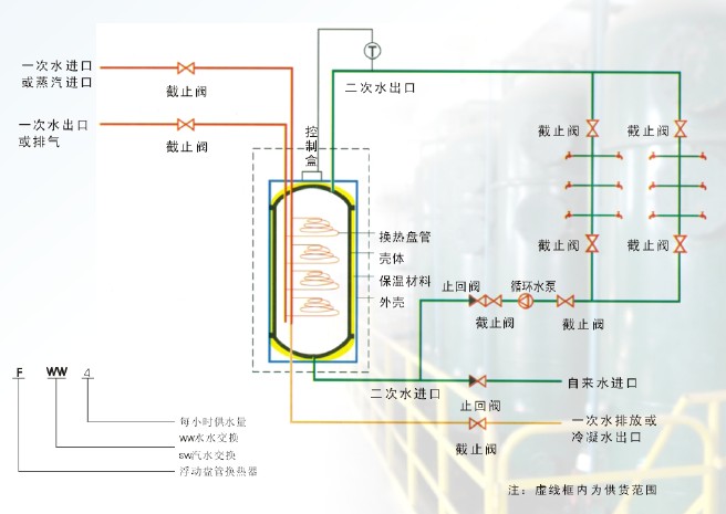 4、本產(chǎn)品在用水量極小或不可用水時(shí)可借助熱水管網(wǎng)上循環(huán)泵的工作,維持罐內(nèi)水溫,使換熱部分換熱時(shí)總處于被加熱水流動(dòng)狀態(tài),使換熱充分、節(jié)能。無論使用頻繁與否,均保量恒溫供水。